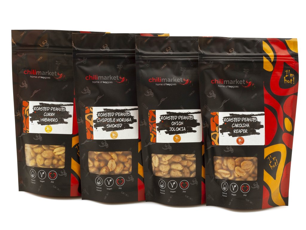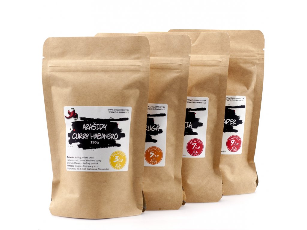- začneme level pálivosti 2/5 - CURRY HABANERO arašídy s pořádnou dávkou orientálního curry a pálivého habanera. Tyto chutnají opravdu každému!