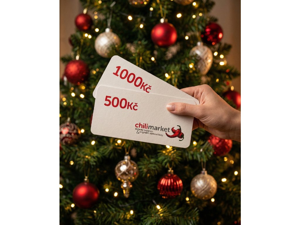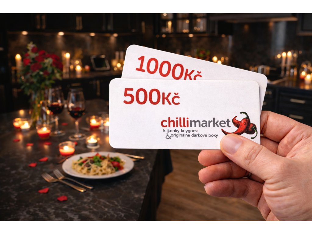 Dárkový poukaz na nákup na chilimarket.cz. Ideální dárek pro milovníky chilli, pálivých chutí a originálních drobností.