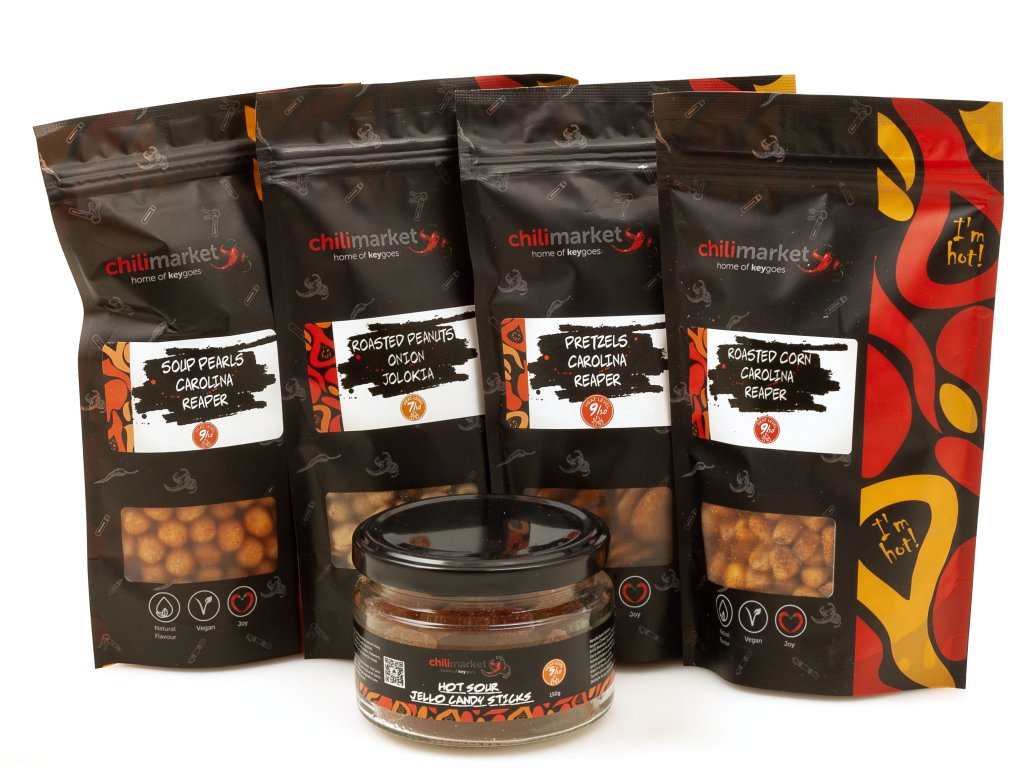 Snack Box od Chillimarketu je ideální balíček pro každého, kdo si rád pochutná na ostrých dobrotách – ať už jsi začátečník, zkušený fanoušek nebo chilli šílenec.